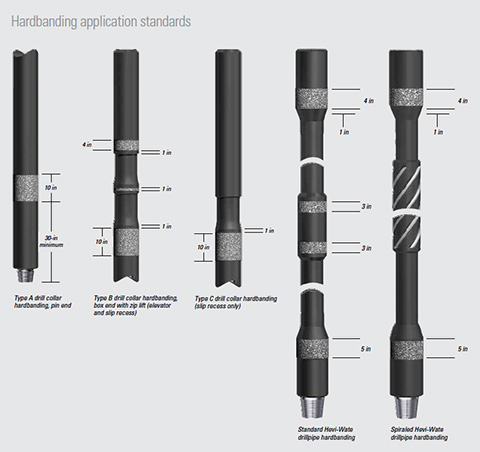 State-of-the-art portable equipment and fully trained and qualified Hard Band Industries personnel provide onsite application of hard banding for drill pipe, drill collars, and Hevi-Wate transition drill pipe, resulting in superior abrasion and wear protection. Standard tungsten carbide and premium hard banding materials are available.